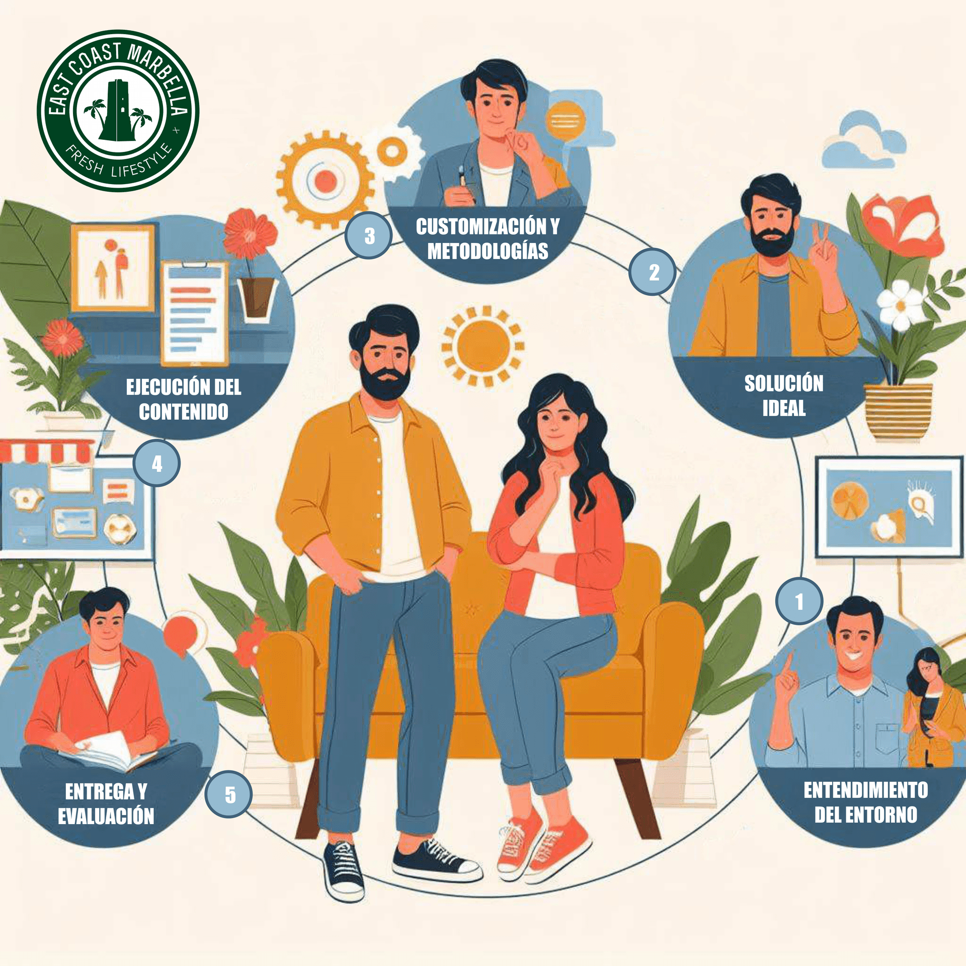 3. Customización y metodologías: Seleccionamos las metodologías más adecuadas para abordar los desafíos específicos. Luego, desarrollamos un plan de trabajo detallado para la ejecución del contenido de valor.